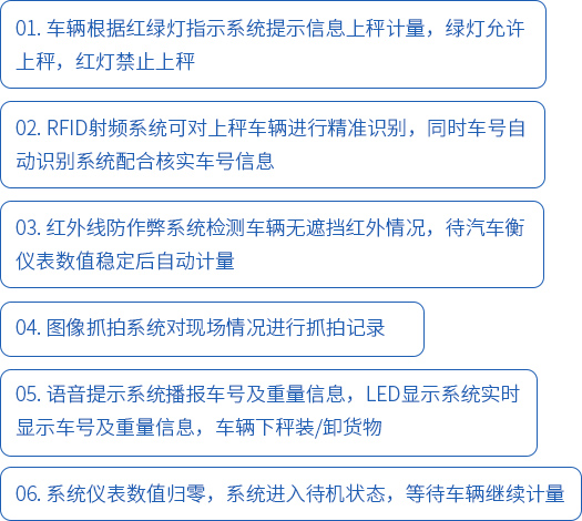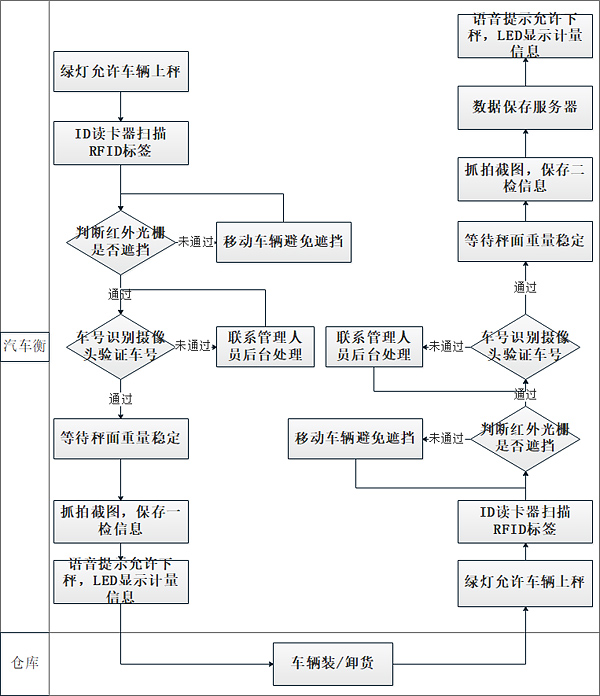 按功能性劃分,主要由以下幾個小系統組成:數字式電子汽車衡系統,RFID射頻系統,車號自動識別系統,圖像抓拍與視頻監控系統,LED顯示系統,紅外線防作弊系統,紅綠燈指示系統,語音提示系統,稱重管理系統等。