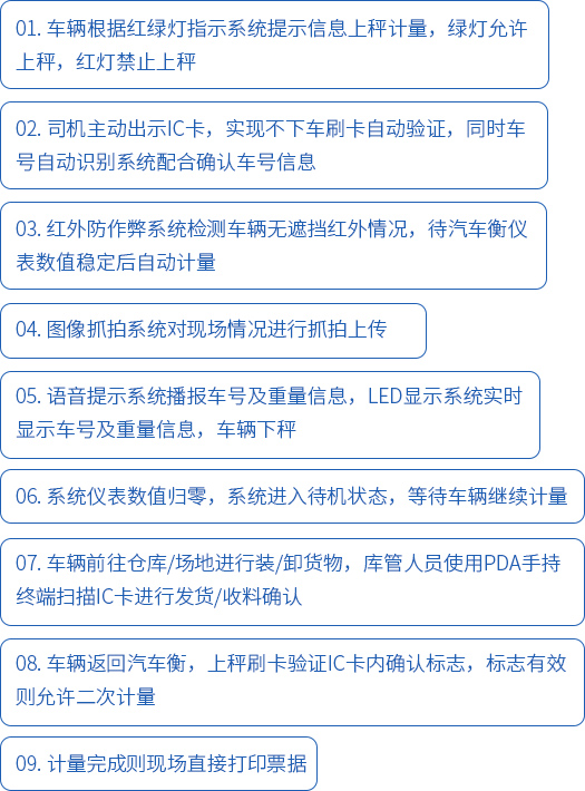 ● 采用先進(jìn)的紅外光感技術(shù),檢測(cè)車(chē)輛前輪后輪有無(wú)超出衡器范圍、后車(chē)是否緊跟壓秤等情況,規(guī)范計(jì)量流程。
