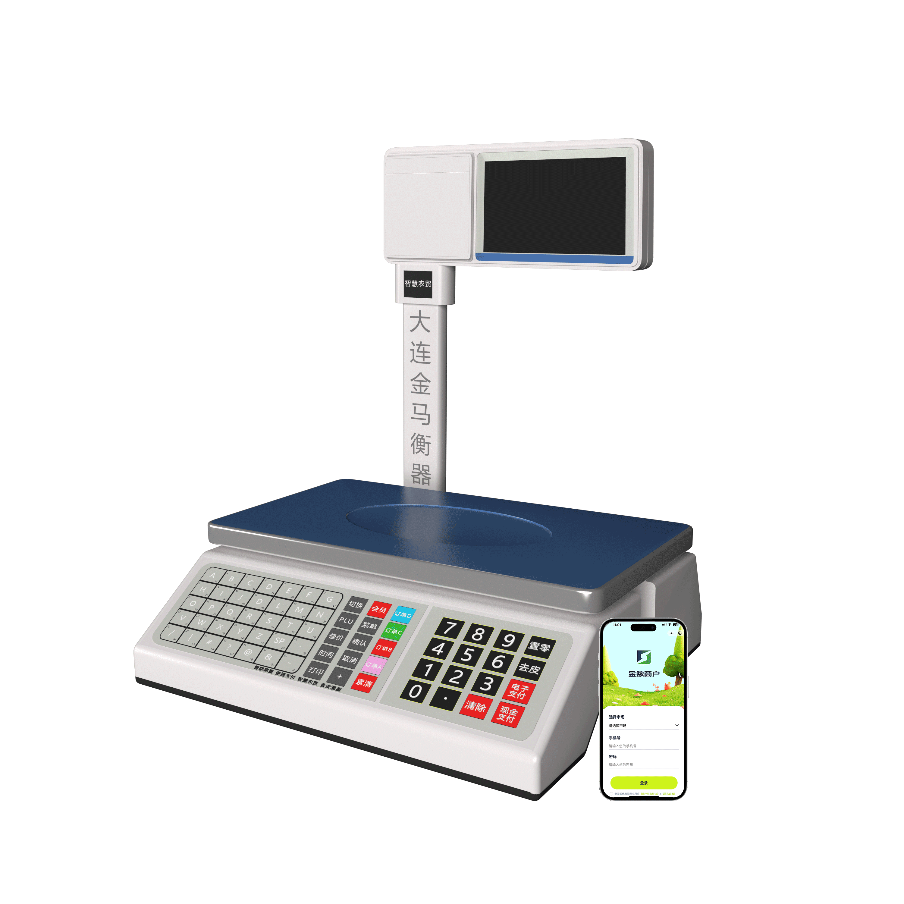 | 商戶小程序 | 配備”金數(shù)商戶“小程序,可設(shè)置PLU商品信息,查詢經(jīng)營報表,管理電子秤等 | 配備”金數(shù)商戶“小程序,可設(shè)置PLU商品信息,查詢經(jīng)營報表,管理電子秤等 |